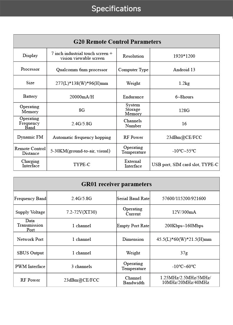 Skydroid G20 obsługuje również odbiornik GR03 (opcja) – wersja premium.